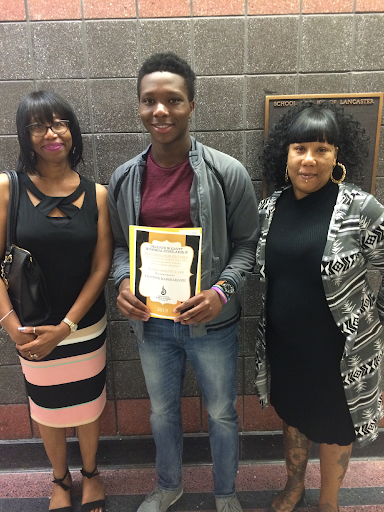 First scholarship award recipient in 2018, Faustine Kaberamanzi, DeVonte’s grandmother, Ann (left), and mother, Angie (right).